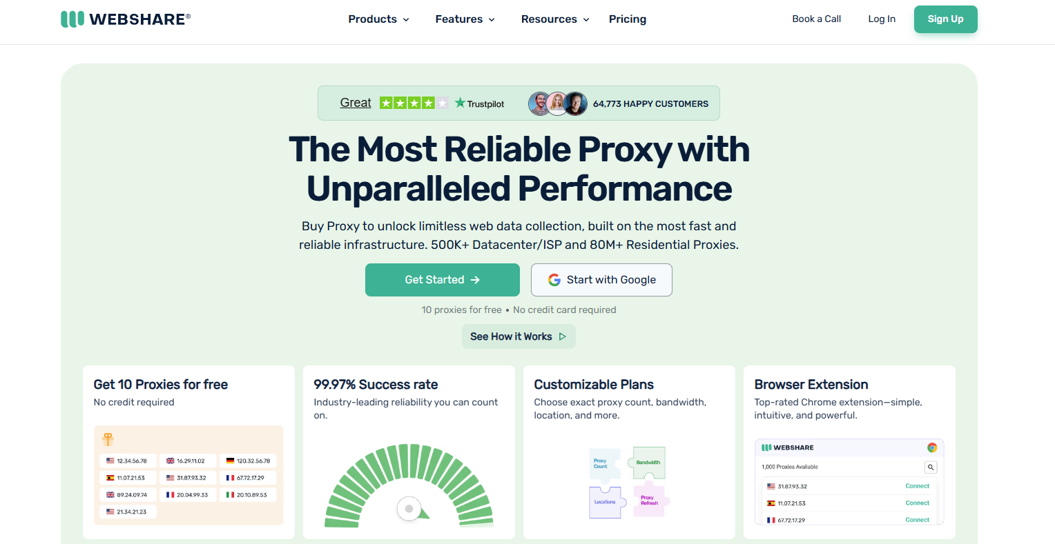 | Webshare | Residencial, centro de datos, ISP | Más de 30 millones | HTTP, HTTPS, SOCKS | 99,9 | 99 | Más de 55 000 (incluidos los usuarios con plan gratuito) | 4,8/5 (2 reseñas) | ❌ (pero hay un plan gratuito disponible) | ❌ | A partir de 7 $ al mes (7 $/GB) |