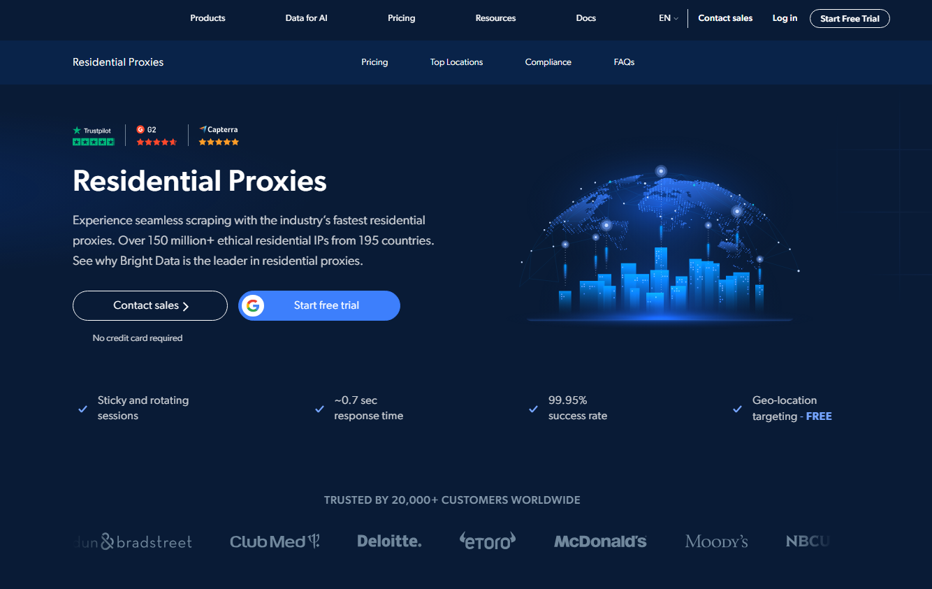 Bright Data destaca como el proveedor de proxy más completo, ya que ofrece una red global inigualable de más de 150 millones de direcciones IP entre proxies residenciales, de centro de datos, de ISP y móviles. Con funciones avanzadas como la Resolución de CAPTCHA, potentes herramientas de scraping y una alta escalabilidad, es la mejor opción para empresas de todos los tamaños. Sus precios flexibles, sus prácticas éticas y su atención al cliente 24/7 hacen de Bright Data la mejor solución global para las necesidades de proxy.