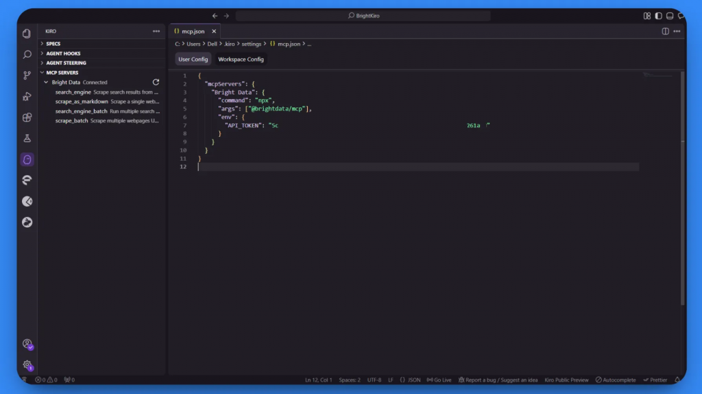 Cómo conectar Kiro a MCP de Bright Data