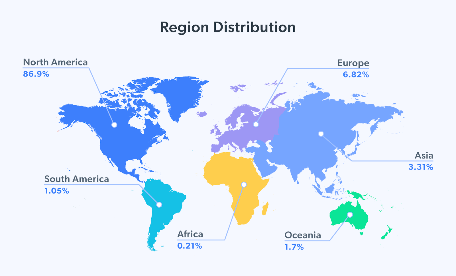África, Oceanía y Sudamérica tienen una distribución de ofertas de empleo considerablemente pequeña. Hay varios factores que pueden explicar esto; en particular, puede deberse a que las economías de estas regiones son comparativamente más pequeñas y a la falta de centros financieros. Sin embargo, esto también puede considerarse una oportunidad de crecimiento e inversión para las instituciones financieras.