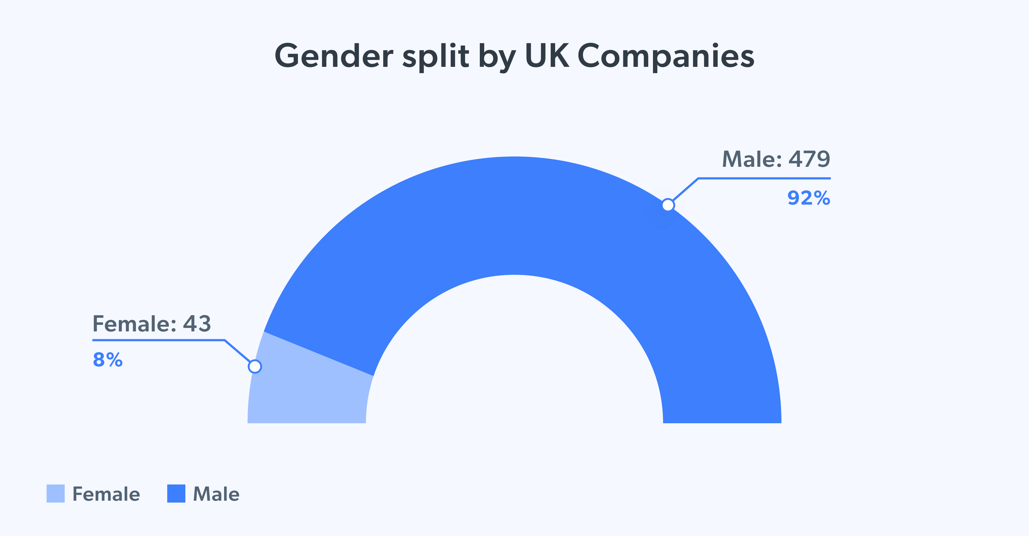 Empecemos por el Reino Unido. Este país ha mostrado avances en materia de diversidad en los últimos 10 años, pero los datos no mienten: la cifra sigue siendo terriblemente baja. Solo el 8 % de las empresas del Reino Unido han sido fundadas por mujeres.