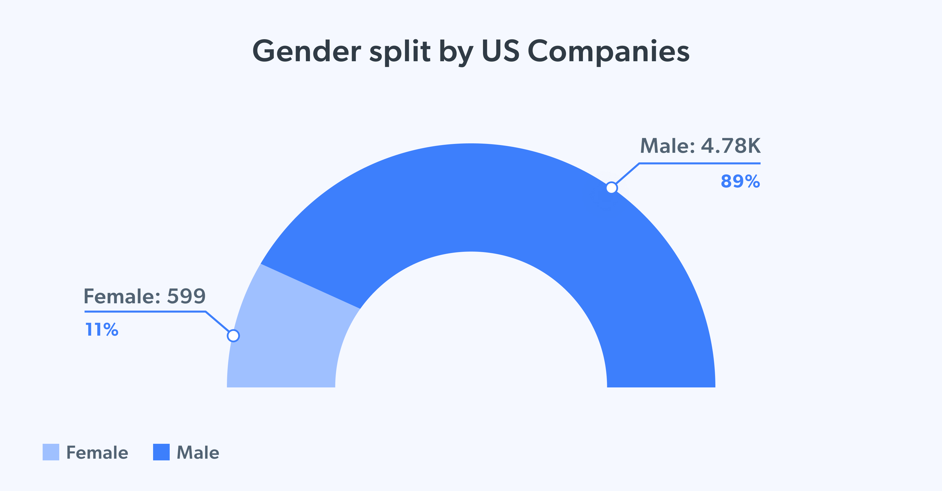 Vamos a ello. Según nuestros datos, ¿cuál es la distribución por género de las empresas activas a nivel mundial? Como se ha mencionado anteriormente, es mucho menor de lo que cabría imaginar.