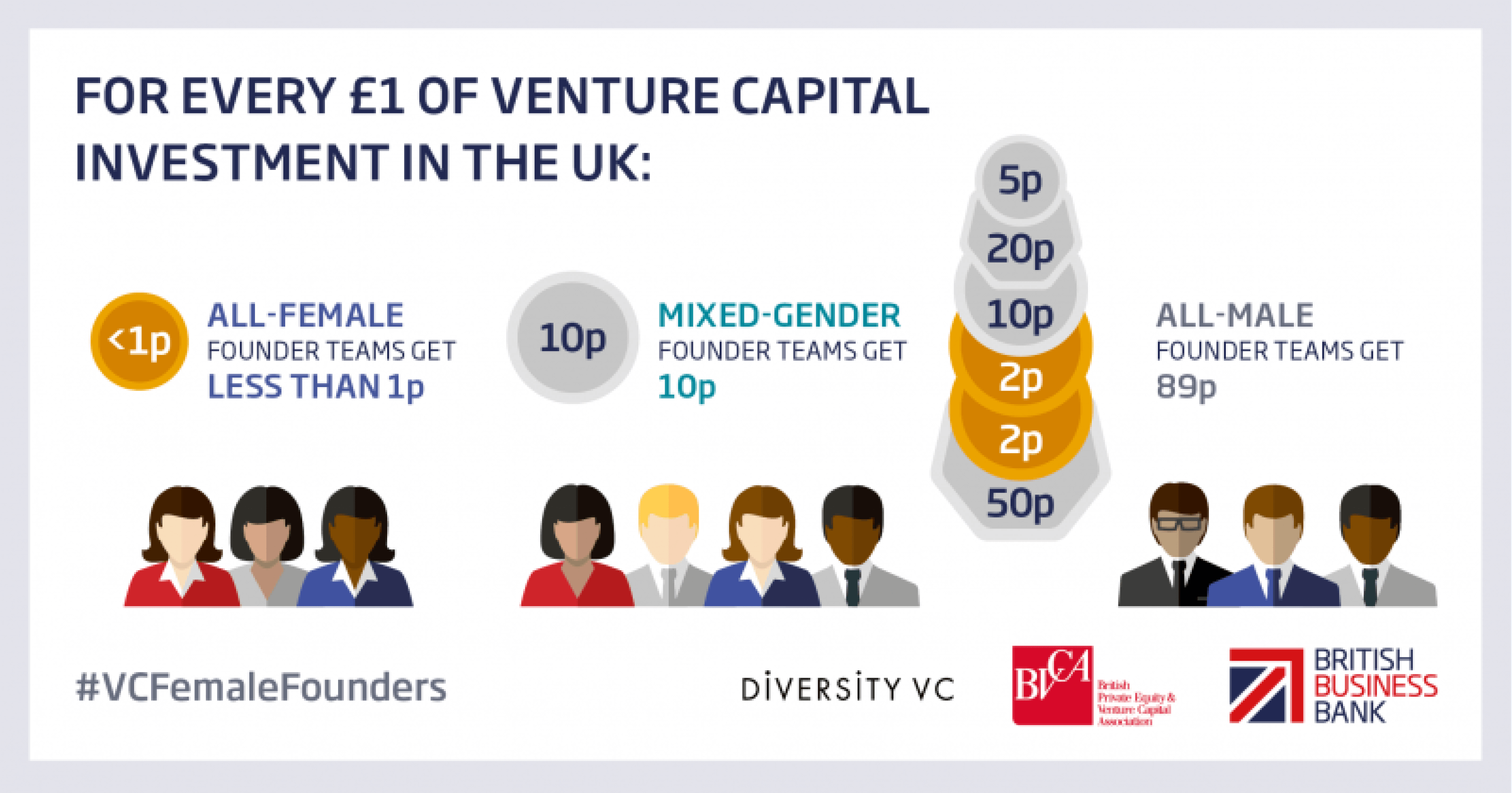 Y en 2017, el British Business Bank, en colaboración con Diversity VC y BVCA, recibió el encargo de identificar las barreras específicas a las que se enfrentan las empresas dirigidas por mujeres para acceder al capital riesgo, y como se puede ver, los resultados son vergonzosos.