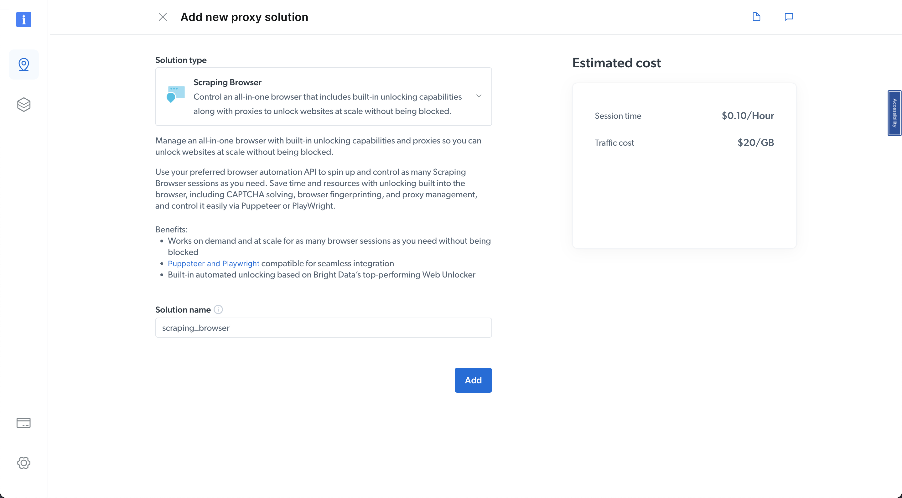 Asigna un nombre (por ejemplo, scraping_browser) y haz clic en Añadir: