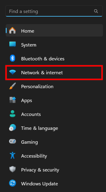 - Paso 2: Seleccione la opción «Red e Internet»: