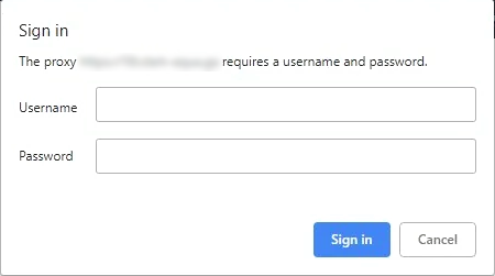 El siguiente paso es asegurarse de que el Proxy configurado funciona como se espera. Para ello, abra su navegador favorito. Si el Proxy requiere autenticación, aparecerá un mensaje como este: