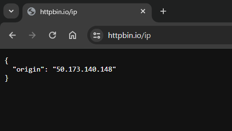 A continuación, navegue hasta la página /ip del proyecto HTTPBin.io:
