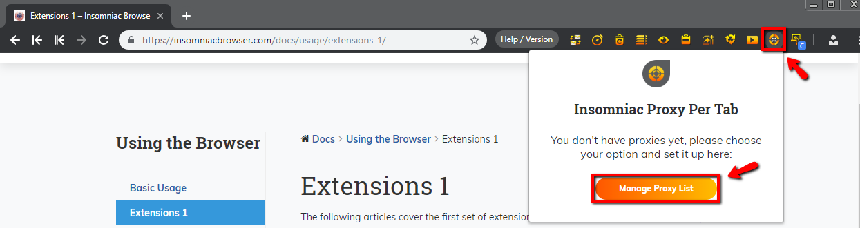 - Haga clic en Insomniac Proxy Per Tab → Manage Proxy List