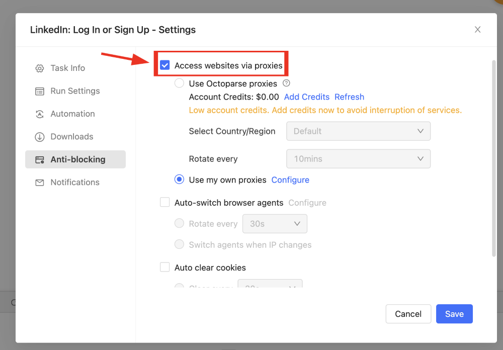 Integración del Proxy Octoparse