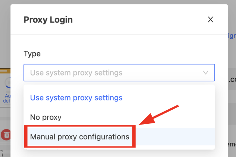 Seleccione Usar mis propios Proxies: