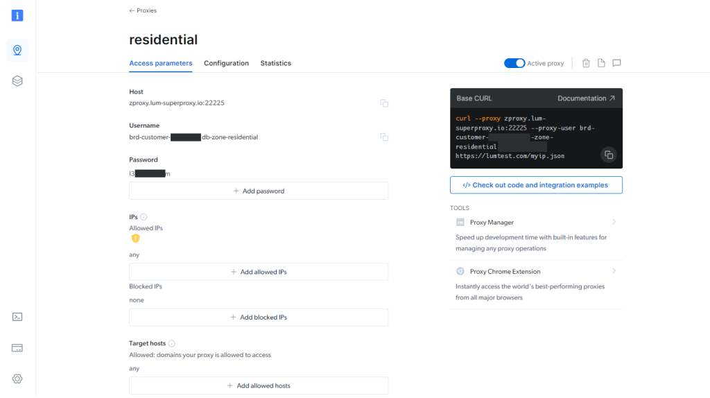 - Elige la opción «Usar proxy» e introduce los datos del proxy proporcionados por Bright Data en el siguiente paso.