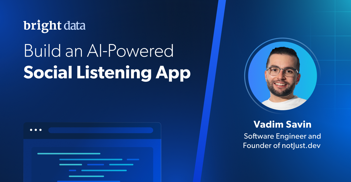 ¡Hola! Soy Vadim y estoy encantado de compartir este tutorial sobre cómo creé una aplicación de escucha social basada en IA. Este proyecto está diseñado para ayudarte a supervisar tu marca, obtener información sobre el mercado y mantenerte por delante de la competencia utilizando las herramientas de Bright Data y tecnologías de IA de vanguardia.